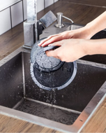 Praktická rukoväť na prenášanie je extra plochá. Rýchloupínacie svorky na veku uľahčujú vyprázdňovanie veľkej 20 l nádoby.