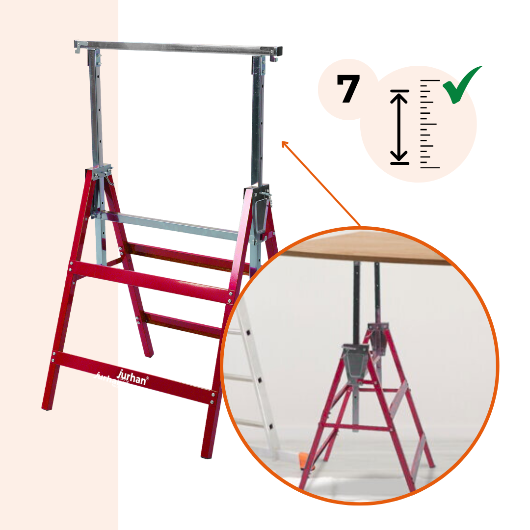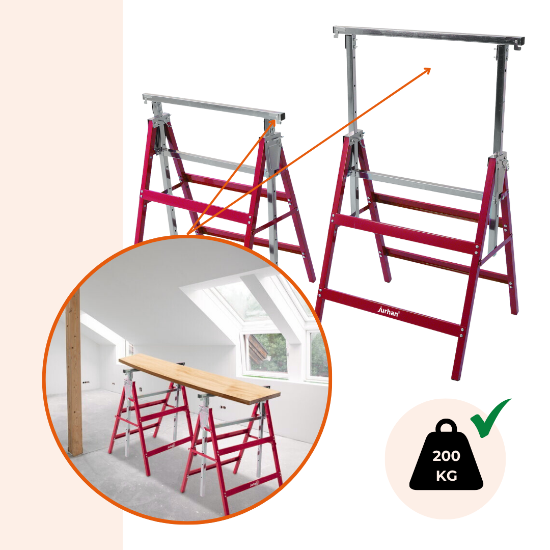 Ideálne multifunkčné využitie pre vnútornú stavbu, maliarske a murárske práce, stropné práce, v záhrade pri stríhaní živého plota, ako stôl na tapetovanie, bufetový pult, pult na nástroje, predajný pult na tržnici.